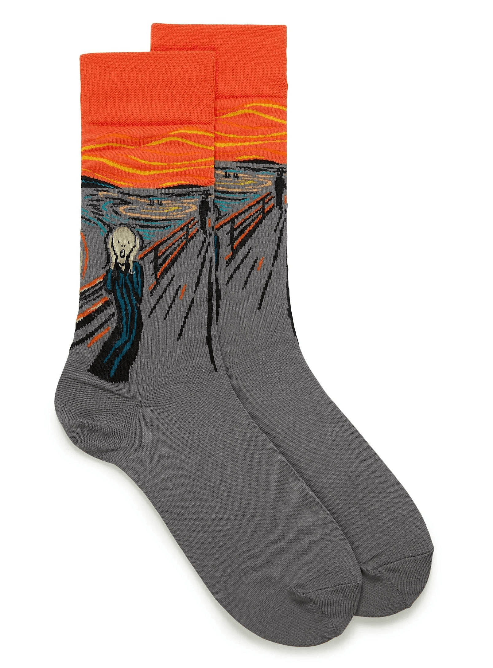 Тези чорапи с изображение на емблематичната картина "Викът" на Едвард Мунк са перфектният начин да добавите нотка на ексцентричност и стил към вашия гардероб.